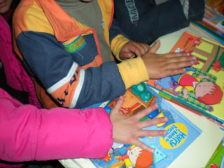 Depois, os meninos e as meninas foram visitar a Feira do Livro. Foi tão bonito ver as mãozinhas pequeninas a tocar os livros como quem desenha carinhos. Como seria o mundo se todos os meninos gostassem de ler?